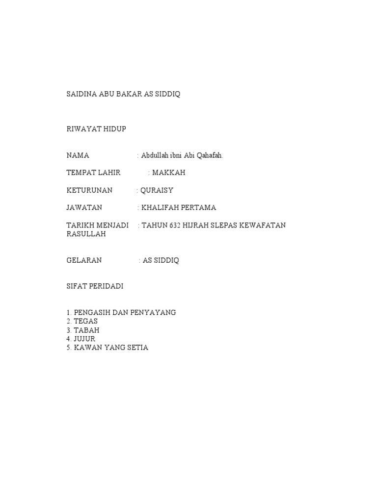 Related : Biodata Saidina Abu Bakar : Dilahirkan pada tahun 573 m..