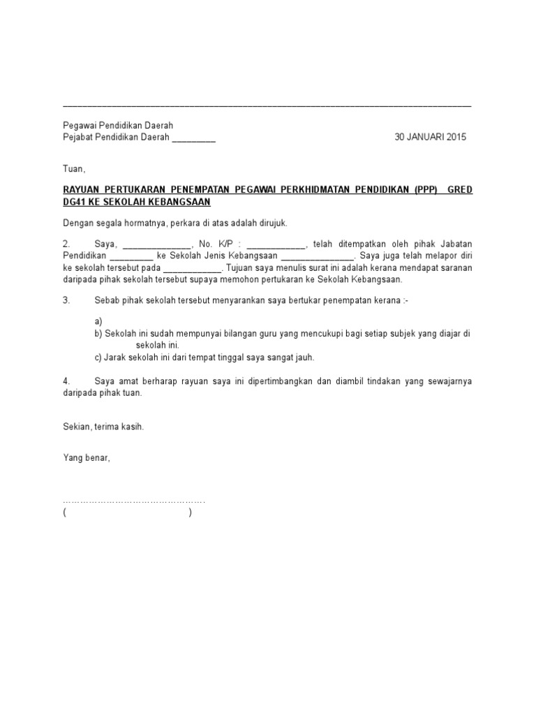 Contoh Surat Rayuan Pertukaran Guru : Contoh surat tugas pengawasan proyek.. Contoh surat pengunduran diri atau resign kerja perusahaan, hotel, bank, alfamart, karyawan kontrak, guru, yang baik dan sopan serta simpel. Selain itu juga, saya memohon pertukaran ke negeri kelantan kerana ingin berada lebih hampir related posts to contoh surat rayuan pembatalan pertukaran guru contoh surat rayuan pembatalan pertukaran guru 2019 10 16t04:00:00 07:00. Surat rayuan dalam entry sini , cn telah berkongsi dengan anda surat sokongan pengetua. Berikut merupakan contoh nota serah tugas & surat rayuan pertukaran. Contoh surat tugas pengawasan proyek.