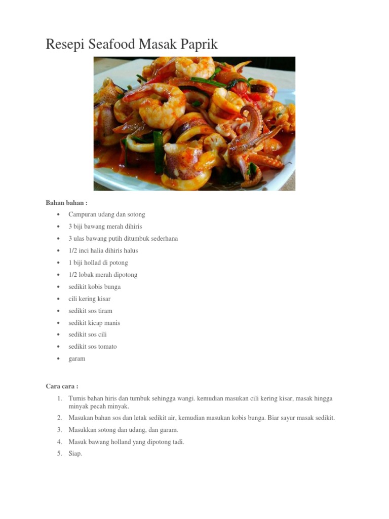 Resepi daging goreng berempah karioleh resepimudahresepi unik masakan daging goreng berempah serbuk kari yang sedap dimakan begitu sahaja atau bersama nasi putih. Aneka resepi seafood ialah satu aplikasi mudah yang mengandungi himpunan koleksi pelbagai resipi masakan dari makanan laut yang dikongsi oleh pengguna di media sosial maupun di blog. Resepi paprik seafood ini ringkas.anda boleh tambah sayur atau bahan yg ingin diubahsuai. Di sini kami sertakan beberapa resepi yang anda boleh cuba. Pedas masam dan aroma lazat.